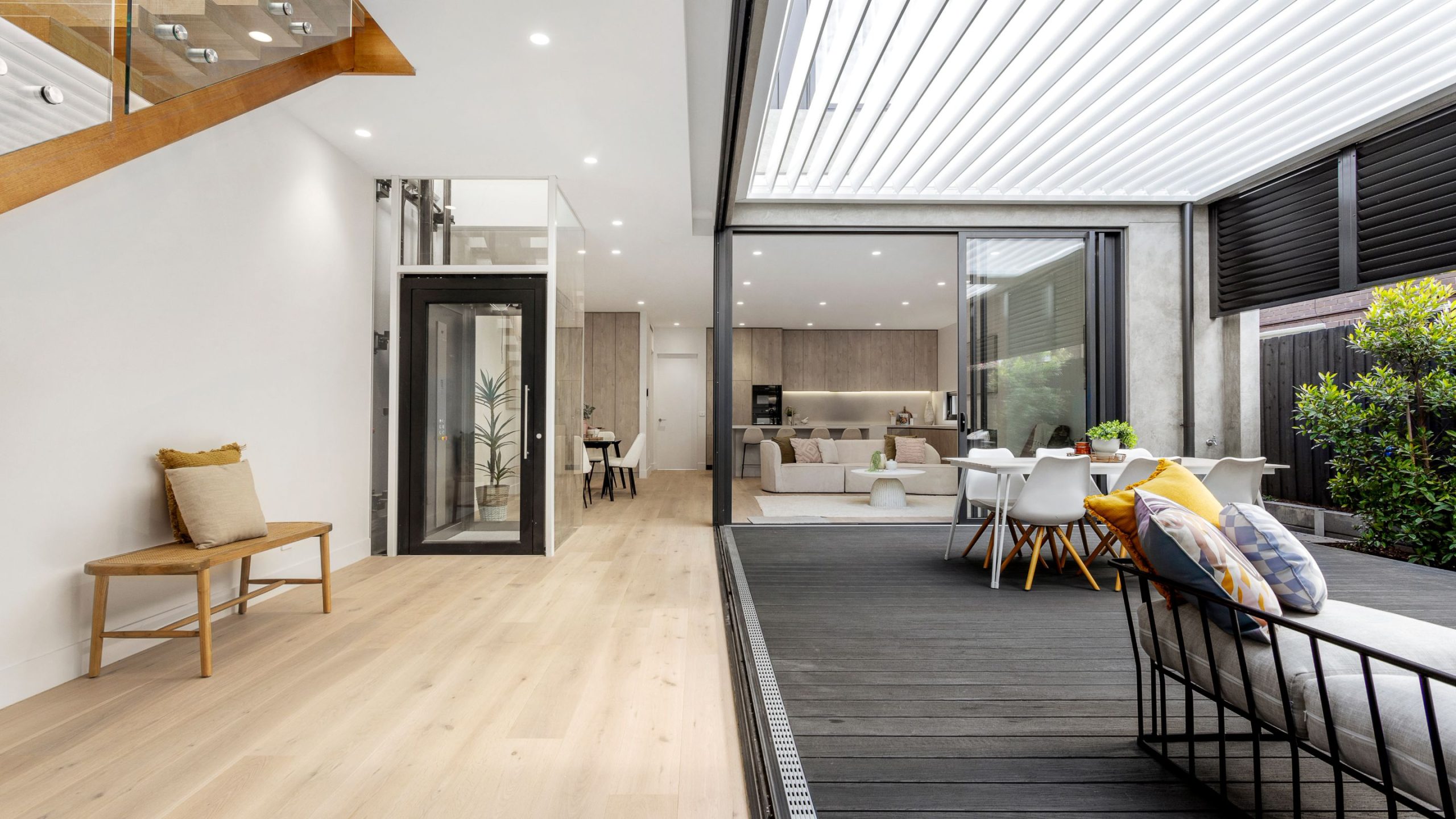 This architecturally designed residence by DO Architects exemplifies premium craftsmanship, sophisticated design, and high-quality finishes throughout. Defined by its striking concrete façade and thoughtfully landscaped frontage, the home delivers a seamless integration of indoor and outdoor living, centred around a fully enclosed alfresco space with automated louvre roofing and full-height glazing. Expansive living and dining areas are supported by a well-appointed gourmet kitchen and butler’s pantry featuring integrated premium appliances, while flexible ground-floor accommodation enhances functionality. The upper level offers a refined private domain, including a luxurious main suite, additional ensuite bedrooms, and a versatile retreat space. Complemented by a comprehensive suite of modern inclusions—including lift access, hydronic heating, zoned climate control, solar integration, and advanced security systems—this residence represents a considered approach to contemporary living in a highly regarded location near Caulfield Park, Malvern Central, and Glenferrie Road.
